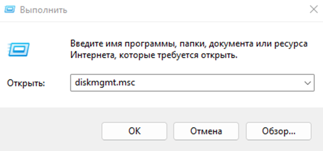 Введите команду: diskmgmt.msc