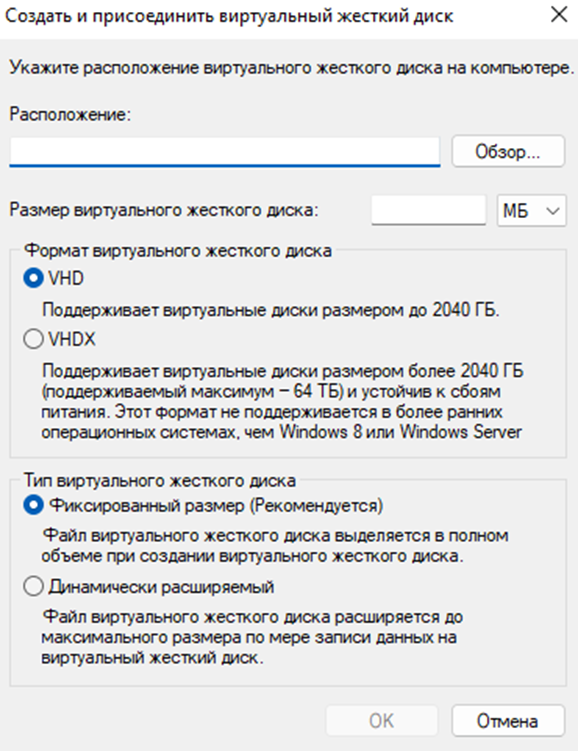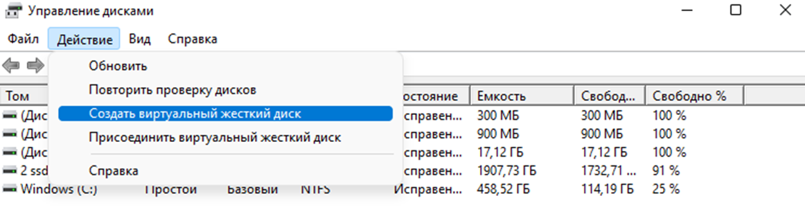 Создать виртуальный жесткий диск.